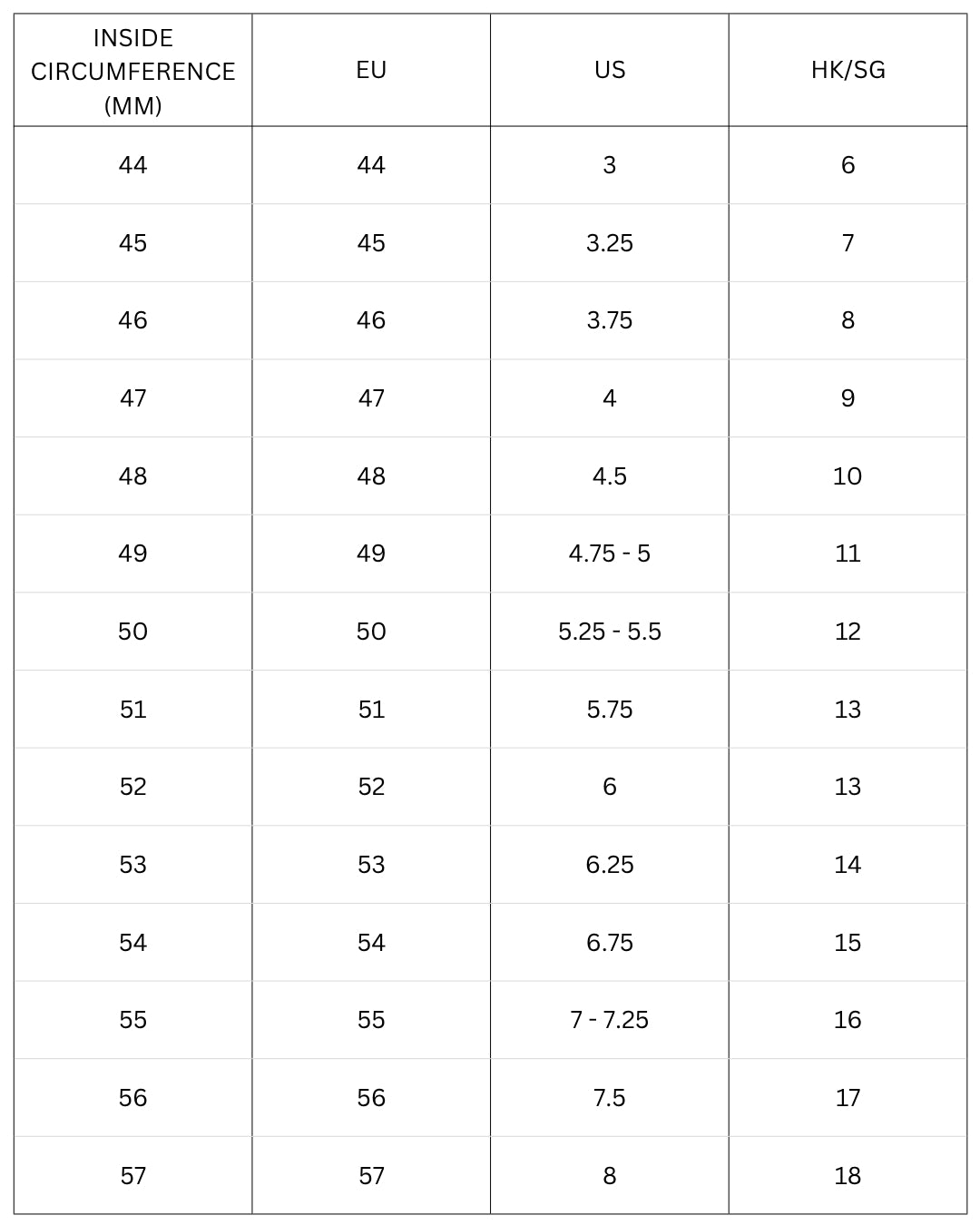 If you have questions about ring sizing or your desired ring size is not listed, please contact us at contact@daiya-jewels.com
